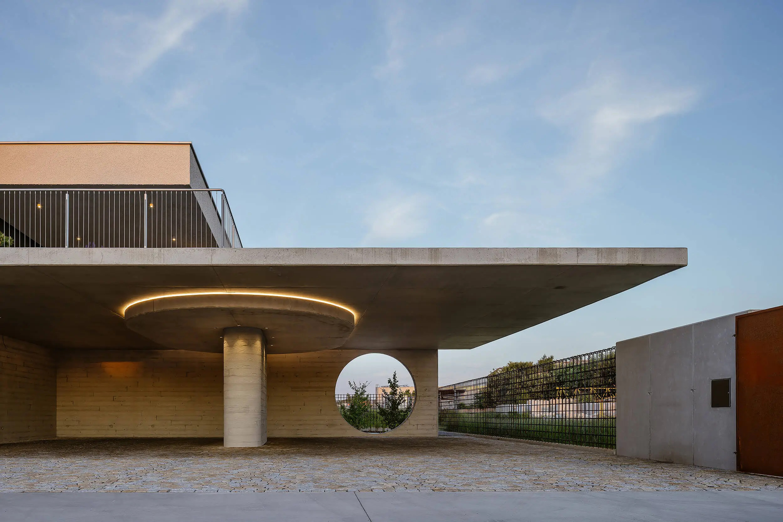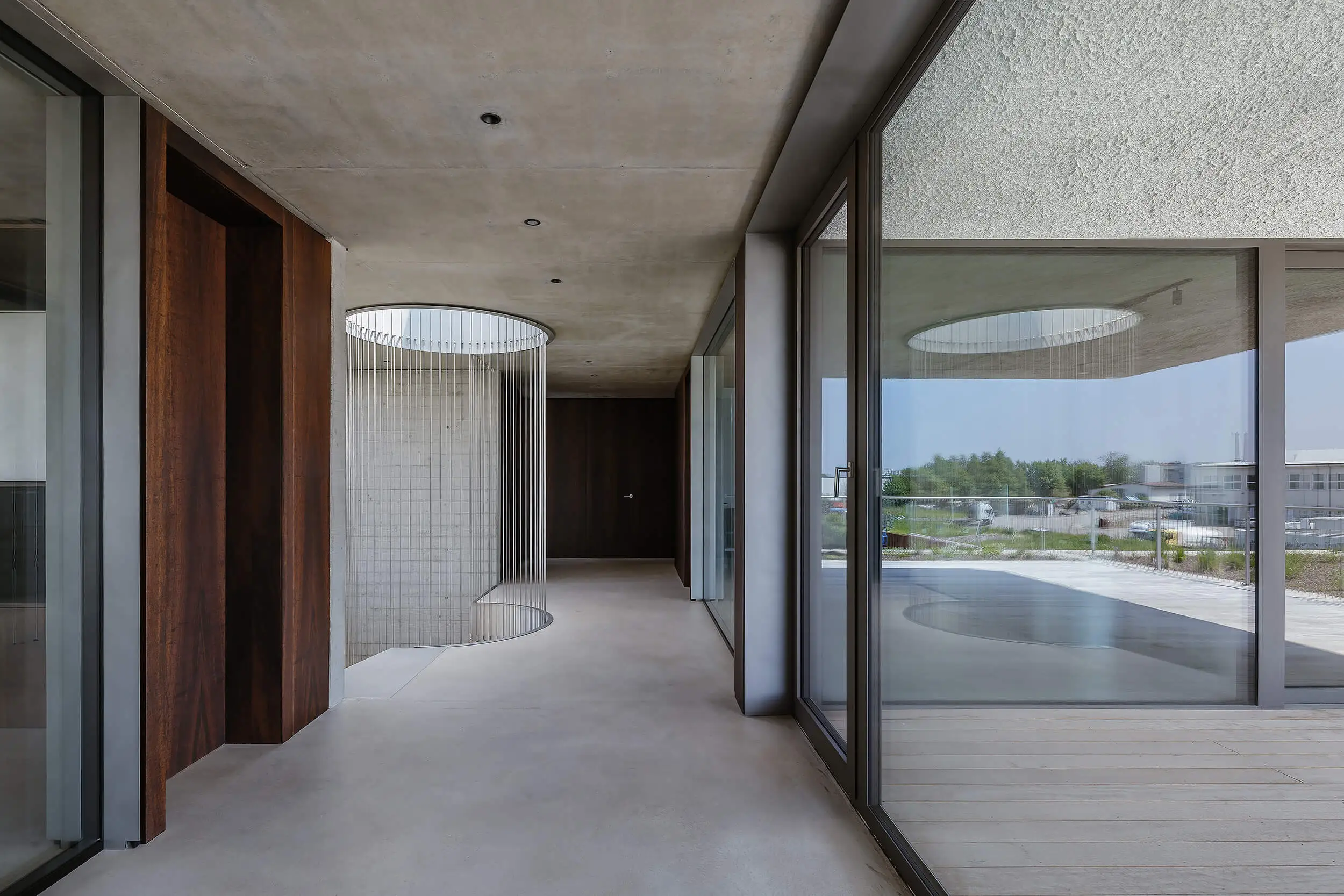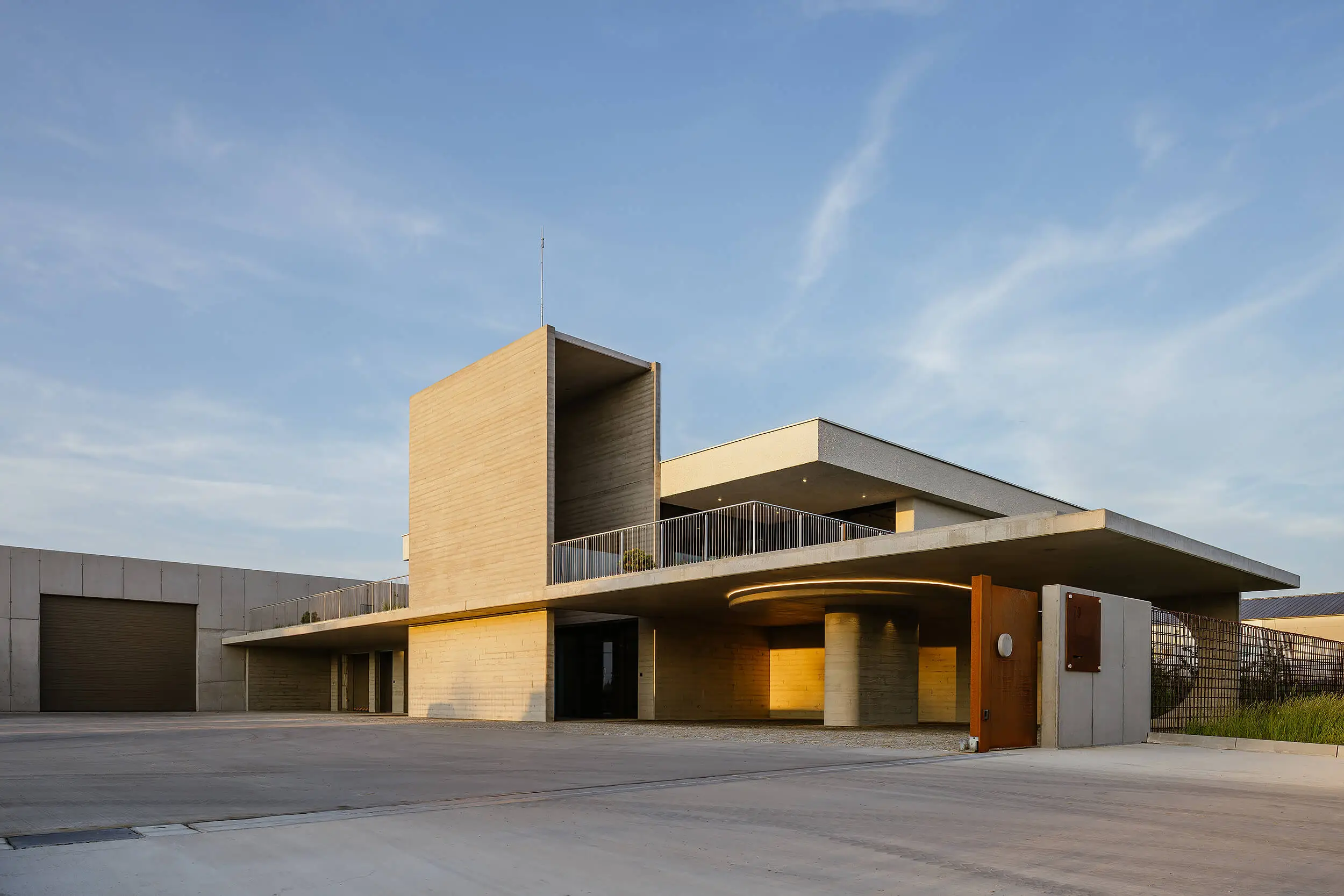 Sídlo pro společnost zabývající se realizací železobetonových konstrukcí, průmyslová zóna na Vysočině, trochu vila, trochu kancelář, trochu zahrada, ale hlavně zázemí a ukázka schopností společnosti a možností provedení, showroom v měřítku 1:1.