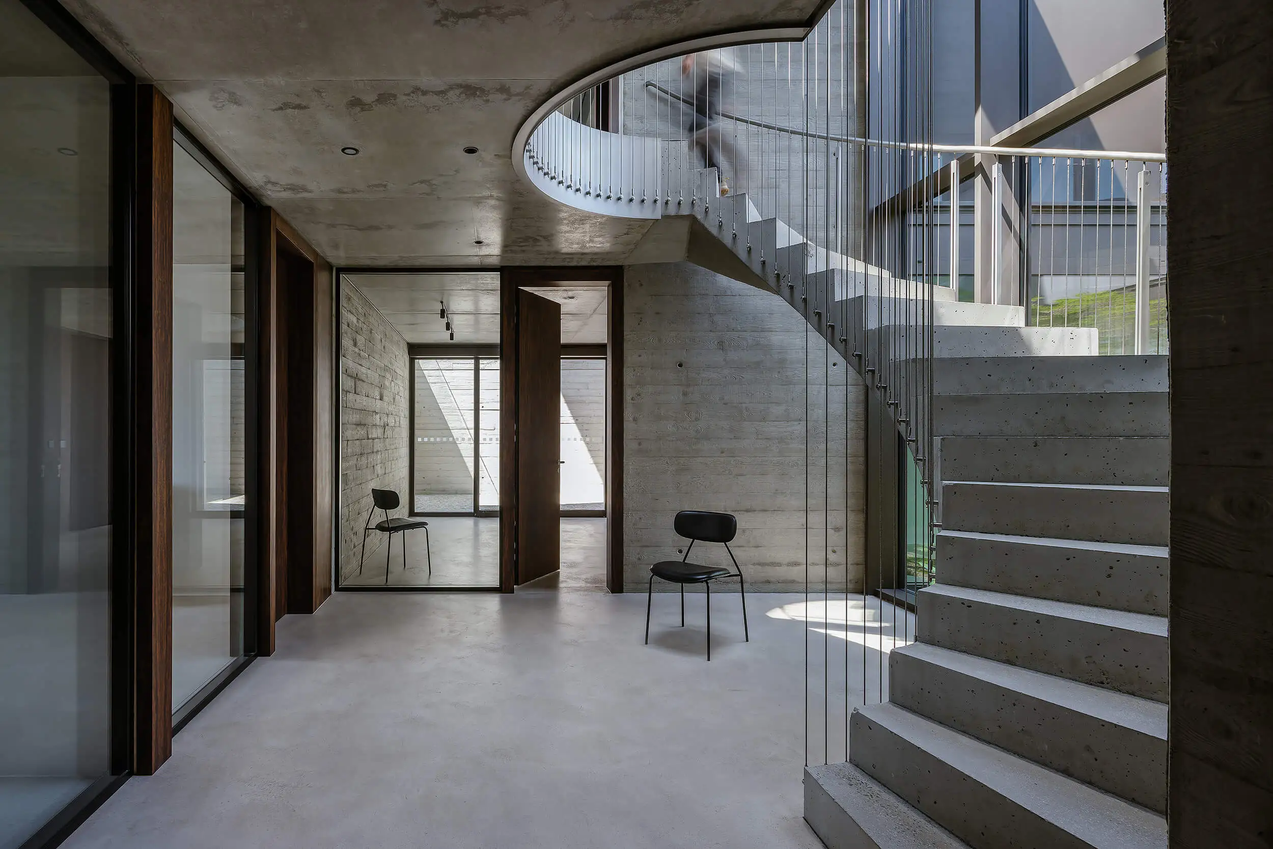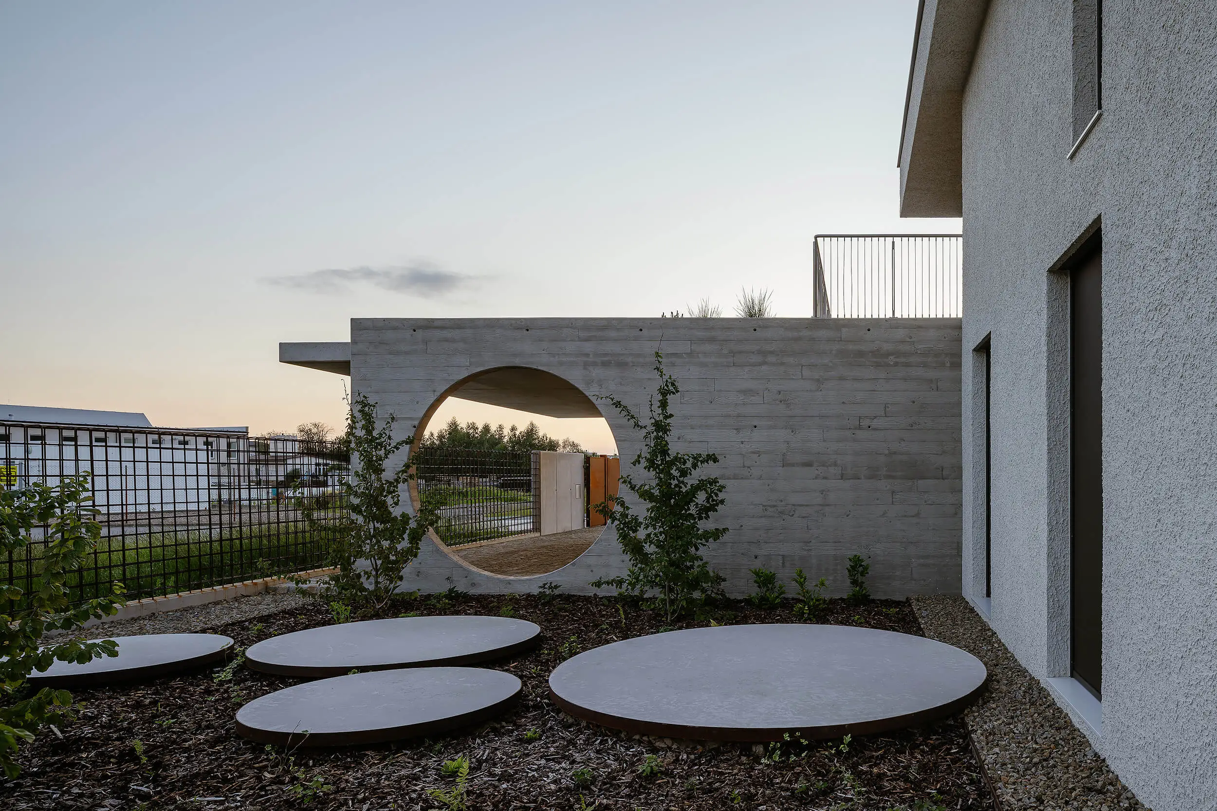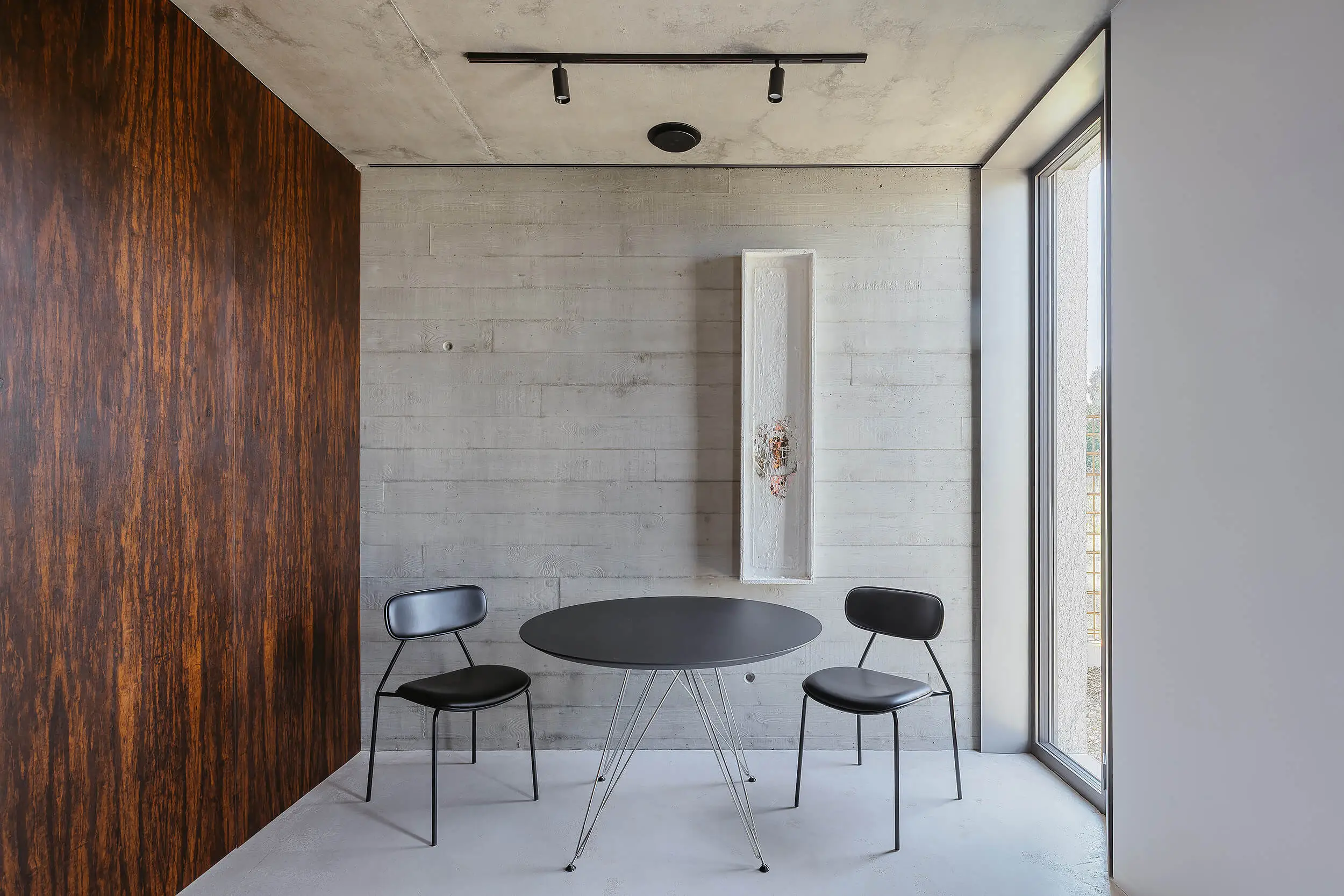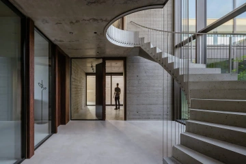 Sídlo pro společnost zabývající se realizací železobetonových konstrukcí, průmyslová zóna na Vysočině, trochu vila, trochu kancelář, trochu zahrada, ale hlavně zázemí a ukázka schopností společnosti a možností provedení, showroom v měřítku 1:1.