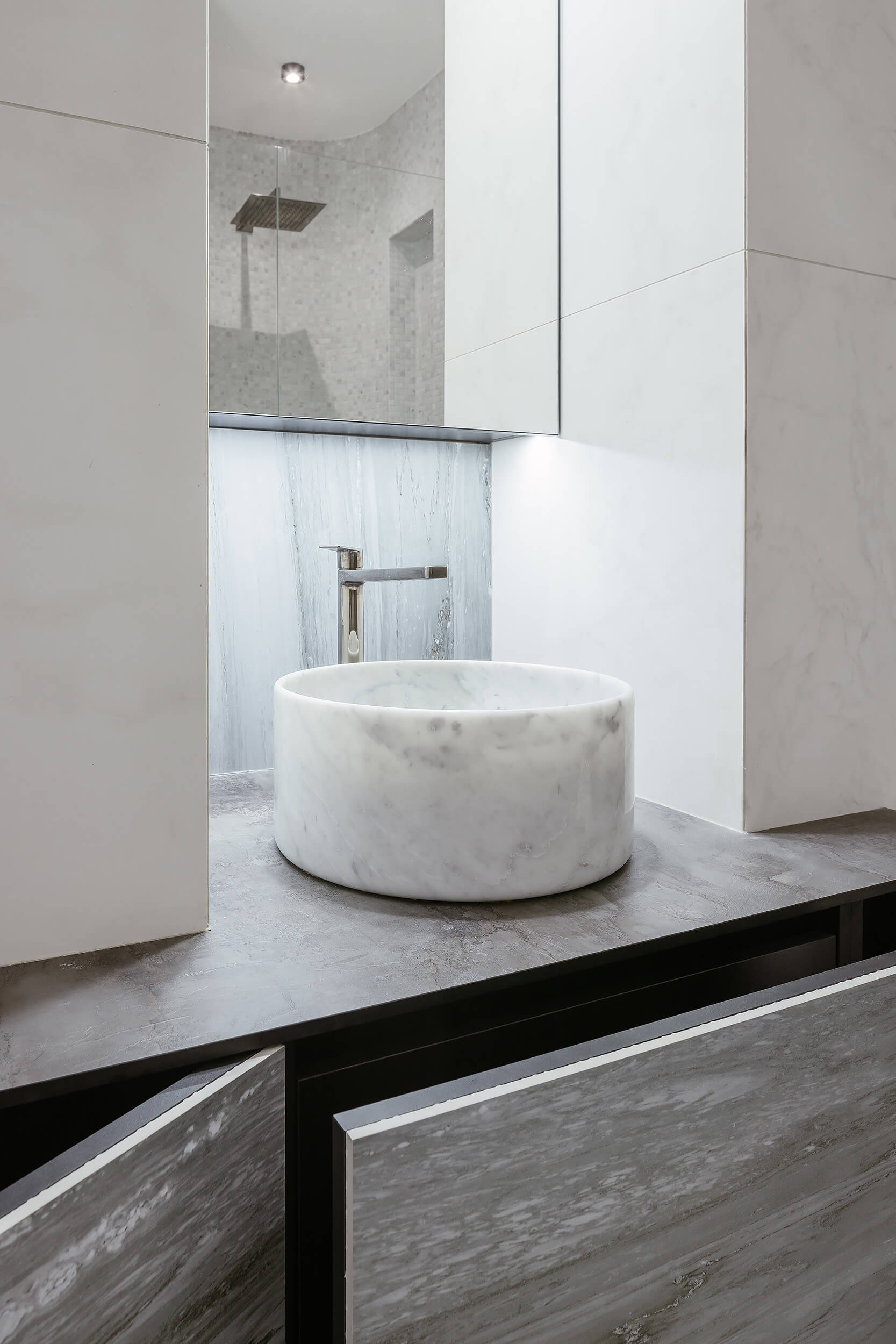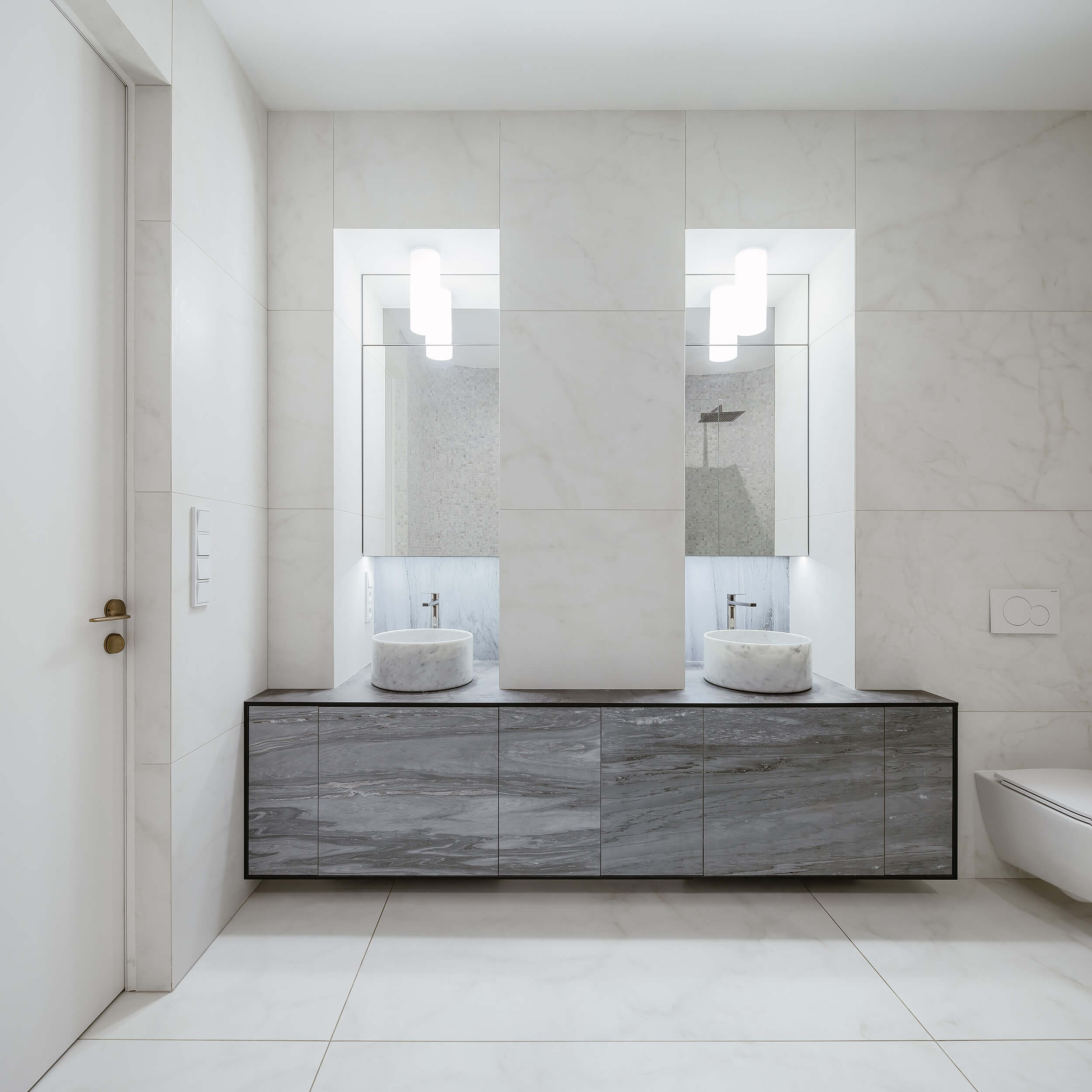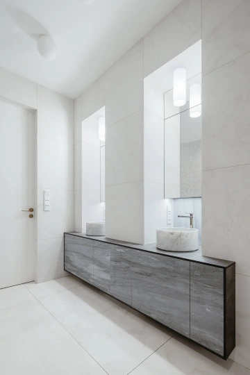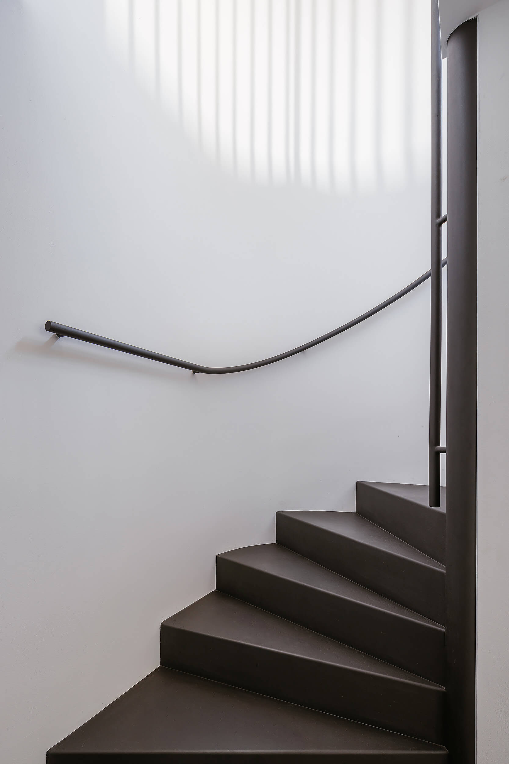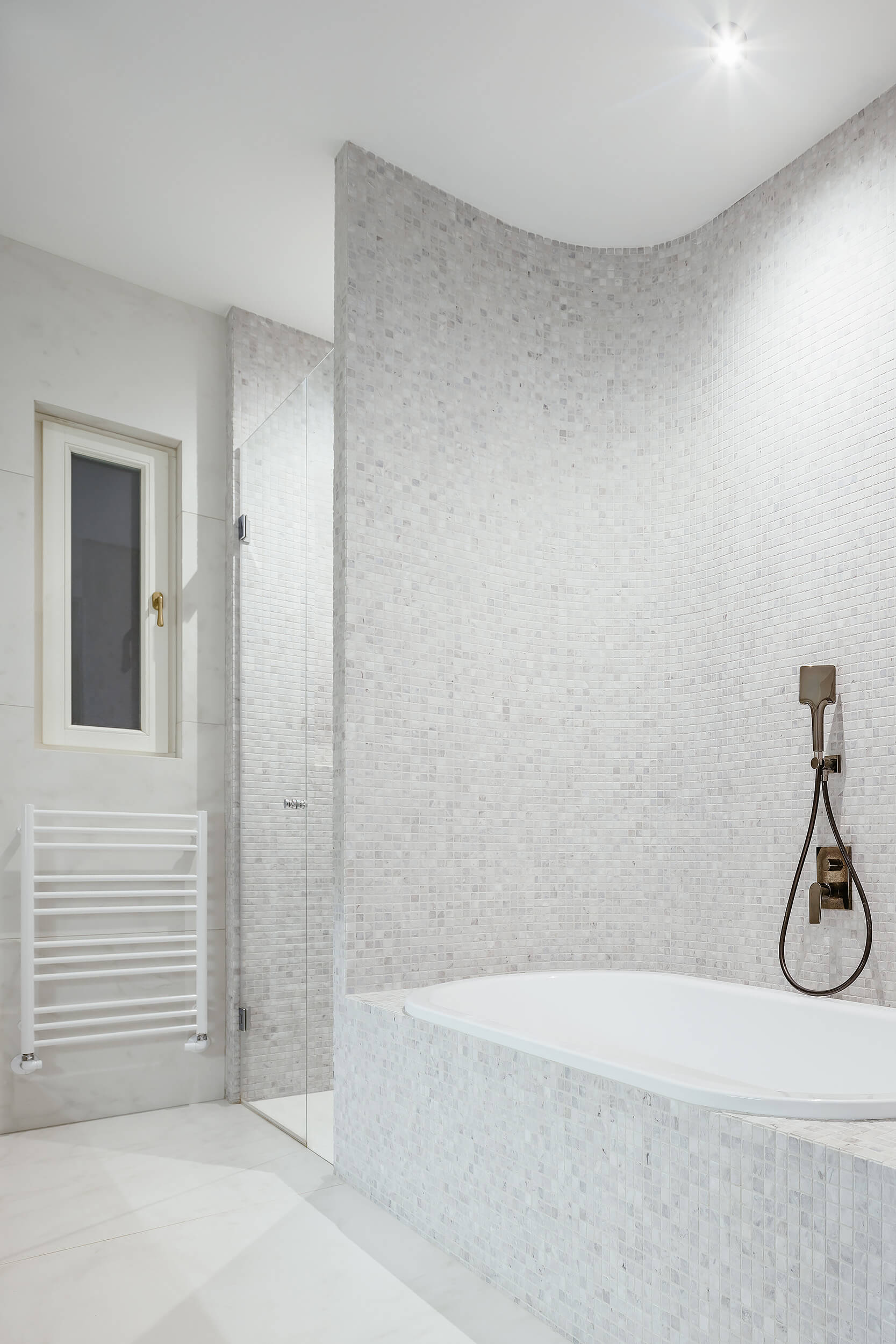 Alternativa rodinného domu na Vinohradech, třípatrový byt ve stabilní blokové zástavbě, klidné a komfortní bydlení v centru vzniklé rekonstrukcí a propojením dvou bytů, plynulé provázání prostorů, přístup světla skrz celý byt, moderní bydlení v tradičním bytovém domě.