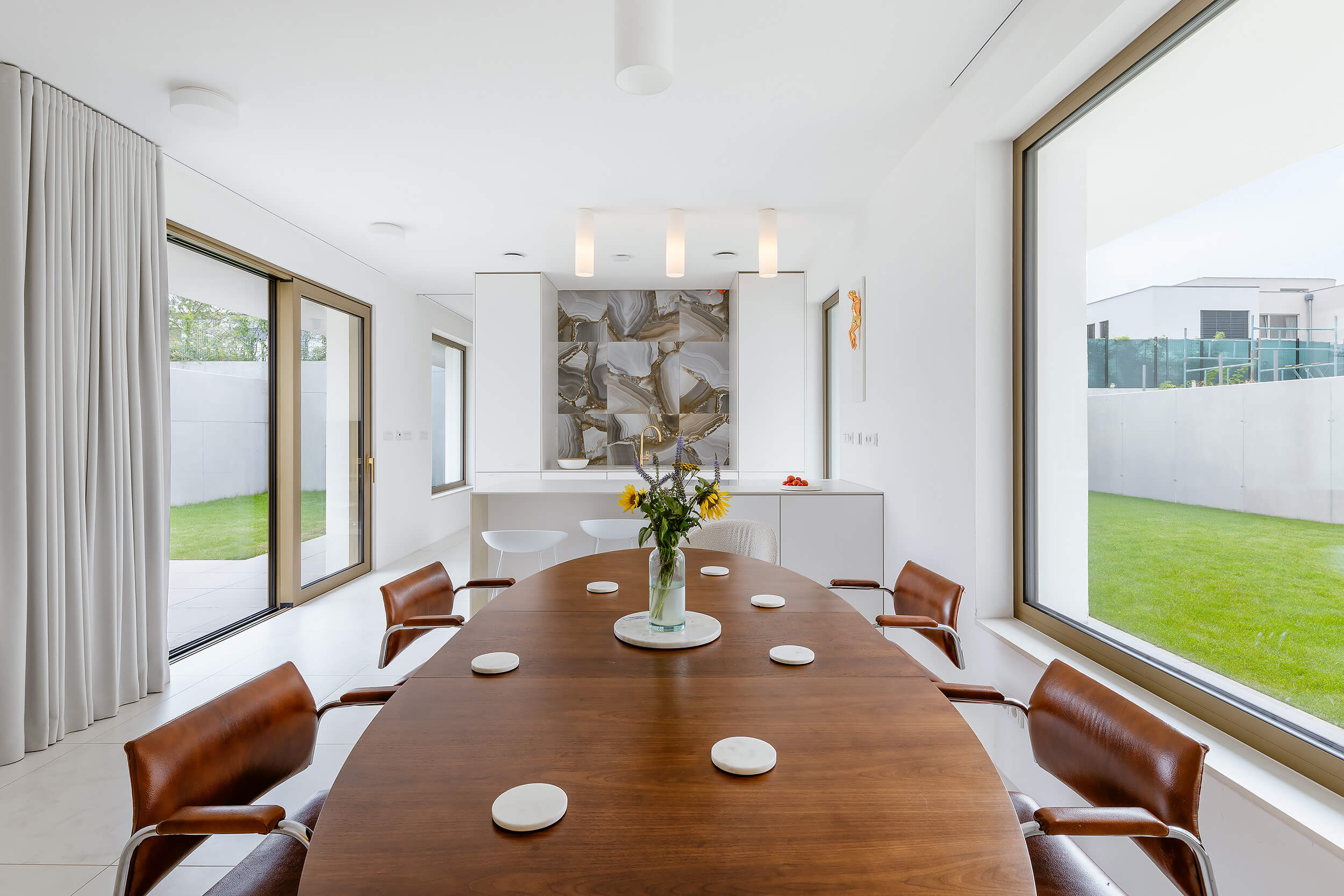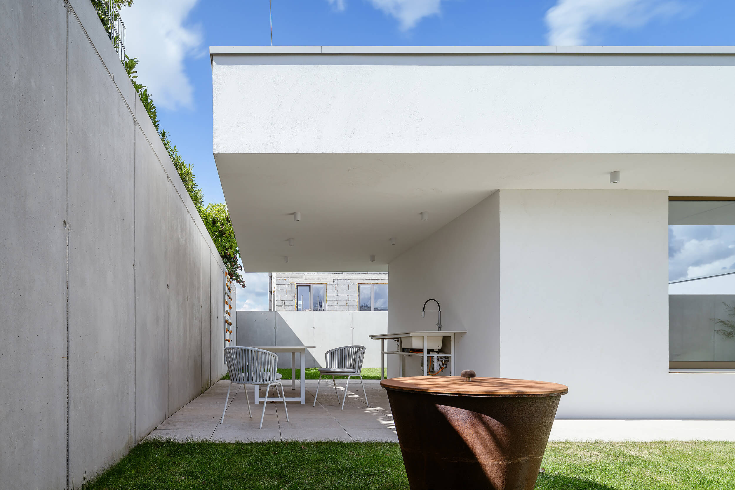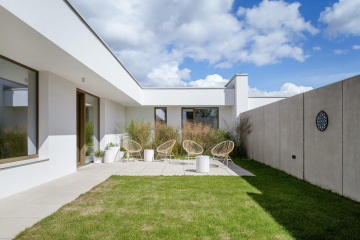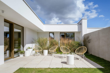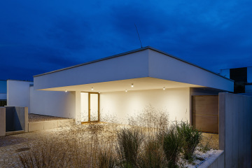 Atriový dům v nové části Žďáru na Vysočině. Uzavřený do ulice, hledící do zahrady, otevřený do nebe. Minimalismus v objetí betonových stěn s maximem soukromí, slunce a světla. Náš příspěvek do debaty o kvalitním bydlení v domě, ve městě.