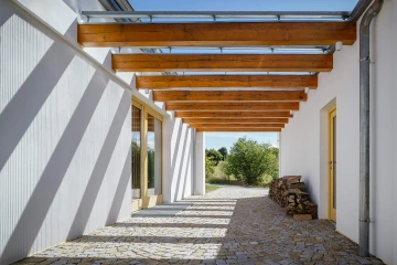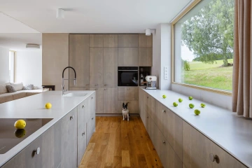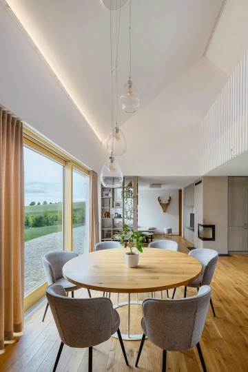 V kopci na Vysočině u křížové cesty stojí klasické stavení - předzahrádka, dům, průjezd a “stodola”, dvůr a zahrada. Zvenku tradiční výraz, uvnitř současný otevřený prostor a pohodlí - domov pro rodinu.