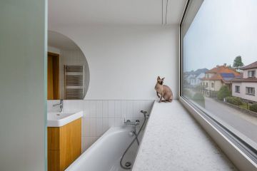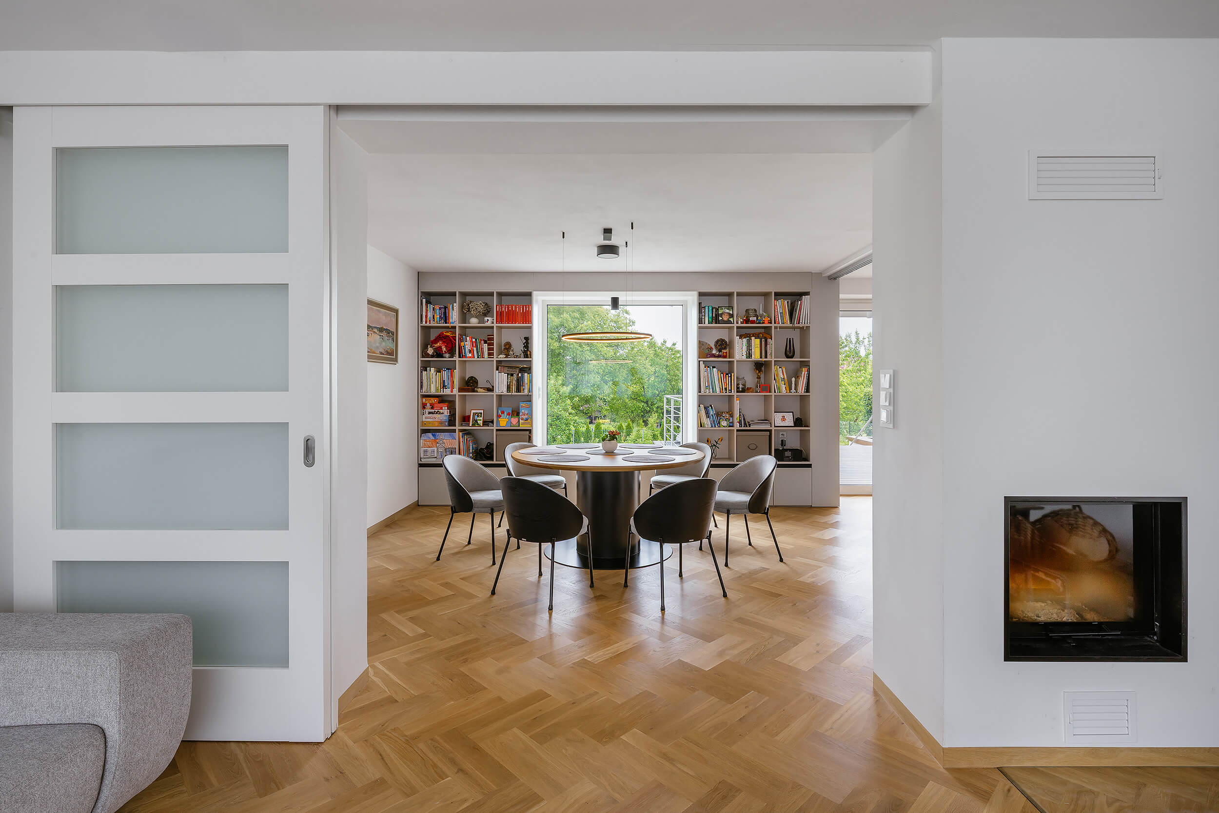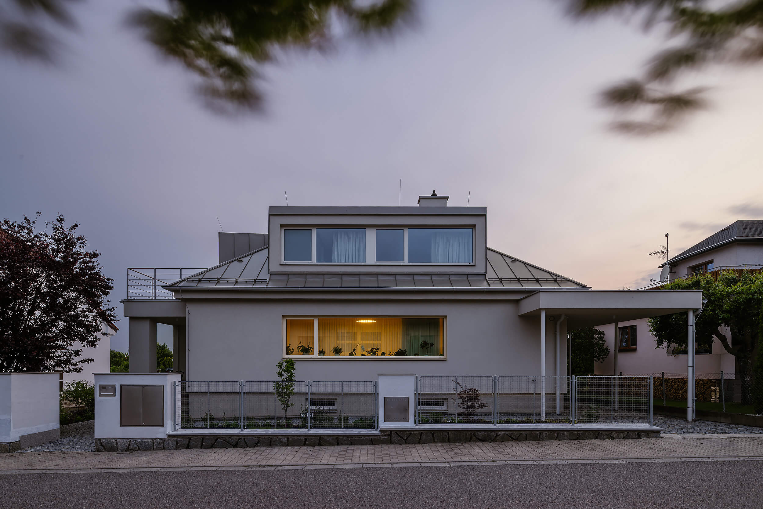 Rekonstrukce rodinného domu na Vysočině, na dohled od památky Unesco, napojení domu na pozemek, zahradu i ulici, úprava a prosvětlení vnitřních prostor původního domu, vložení nové kvality a komfortu do původní stavby, kultivace domu i okolí.